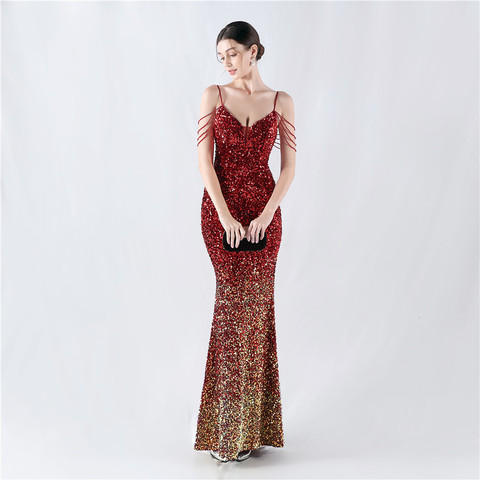 18691 # hiệu suất mới Internet người nổi tiếng tiệc xe mô hình Nghi Thức buổi tối sequin đuôi cá dài Dresses